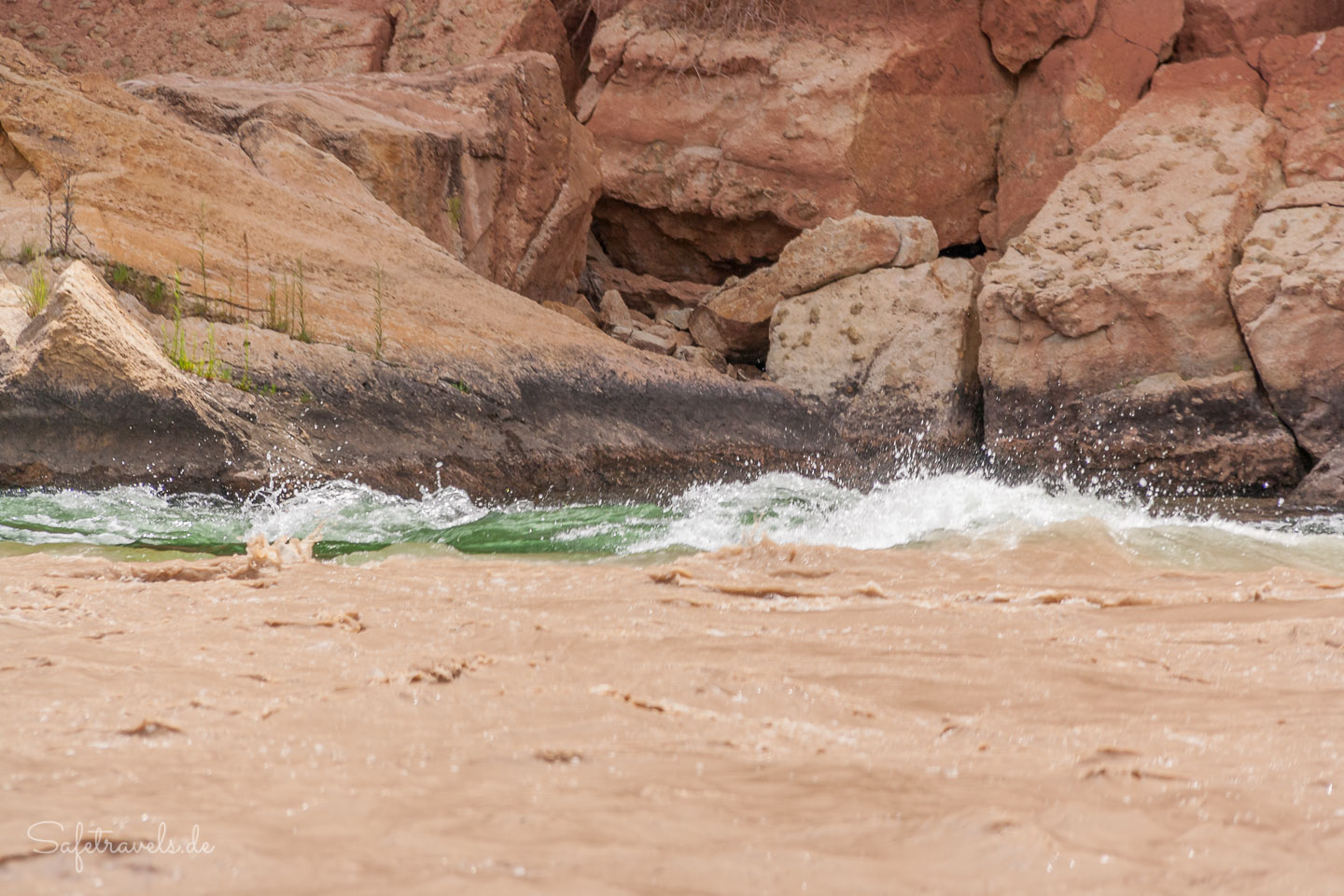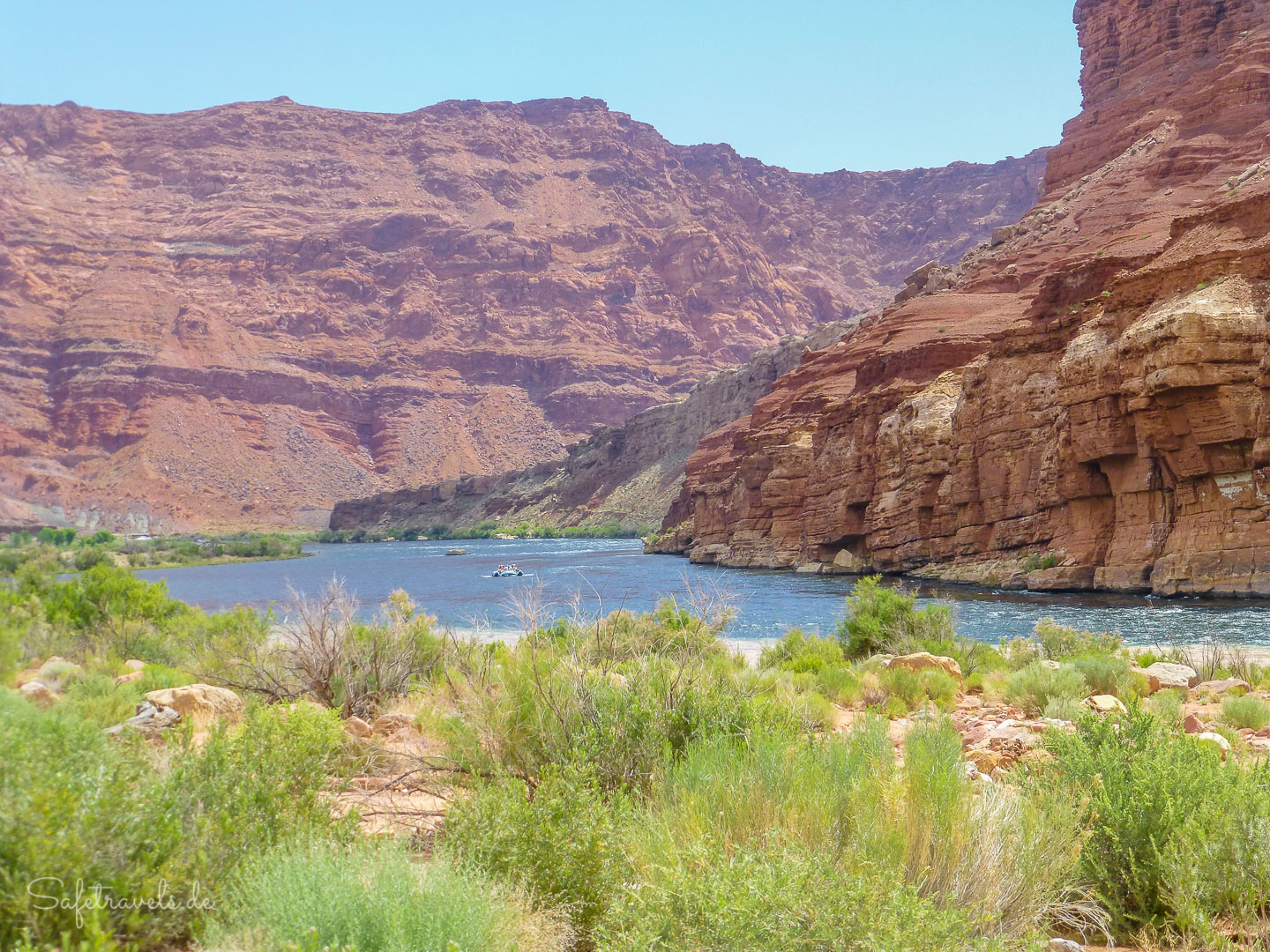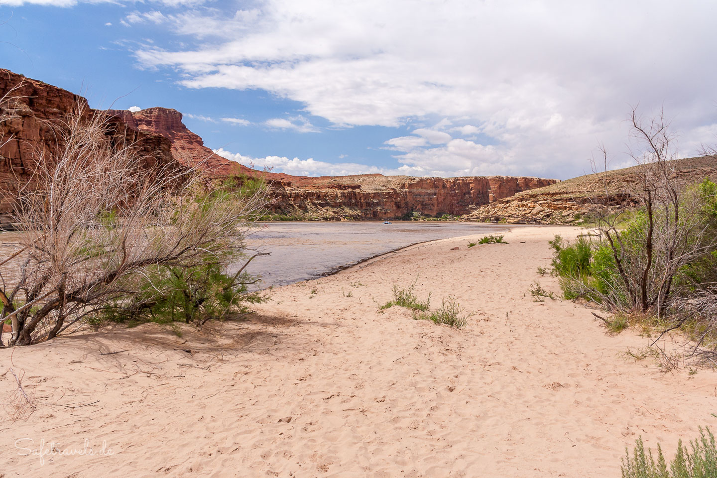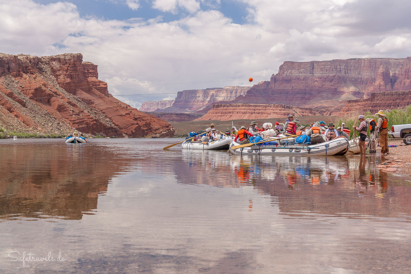 In Marble Canyon nehmen wir die Stichstraße nach Lees Ferry. Hier beginnt offiziell der Grand Canyon National Park und hier starten die Rafting Touren. Auch die Mündung des Paria River in den Colorado befindet sich hier. Wir schlendern ein wenig am Strand entlang und schauen uns den Start einer Rafting Tour an. Wie fühlt sich so eine Tour wohl an? Das könnt Ihr bei 2 on the go nachlesen. Gina und Marcus haben das Abenteuer gewagt!