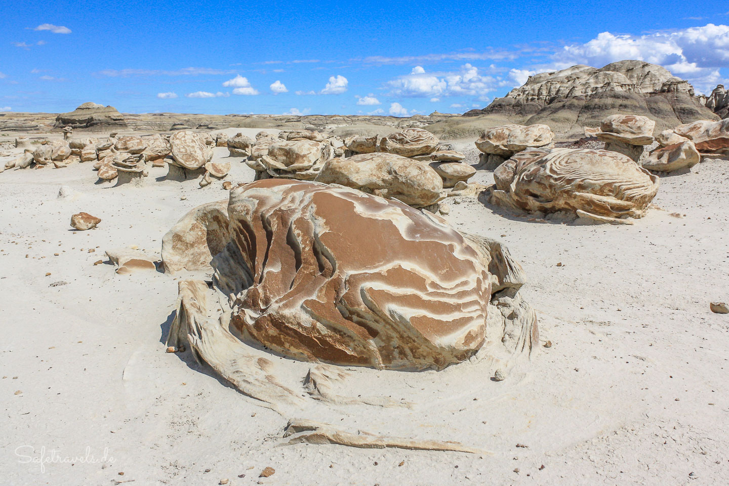 Die Bisti/De-Na-Zin Wilderness im Nordosten von New Mexico steht seit 1984 unter dem Schutz des BLM. Das Gebiet im San Juan County ist für Wanderer und Fotografen ein wahres Paradies aufgrund der erodierten Strukturen, von denen die bekanntesten vermutlich die sogenannten Cracked Eggs sind. Bunte Hoodoos, Hügel und wundersame Gebilde sowie versteinerte Reste von Baumstämmen sind überall in diesem Gebiet zu finden.