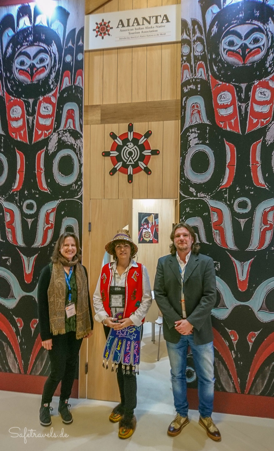 Der Nachmittag war weiteren Terminen vorbehalten, die wir mindestens mit einer Stunde Abstand geplant hatten. Die Gespräche waren sehr interessant und wir möchten noch nicht zu viel verraten. Wir sind jetzt in der Nacharbeit und sehr gespannt, was sich daraus ergibt. Besonders spannend fanden wir unser sehr langes Gespräch mit den Damen am Stand der American Indian Alaska Native Tourism Association (AIANTA).