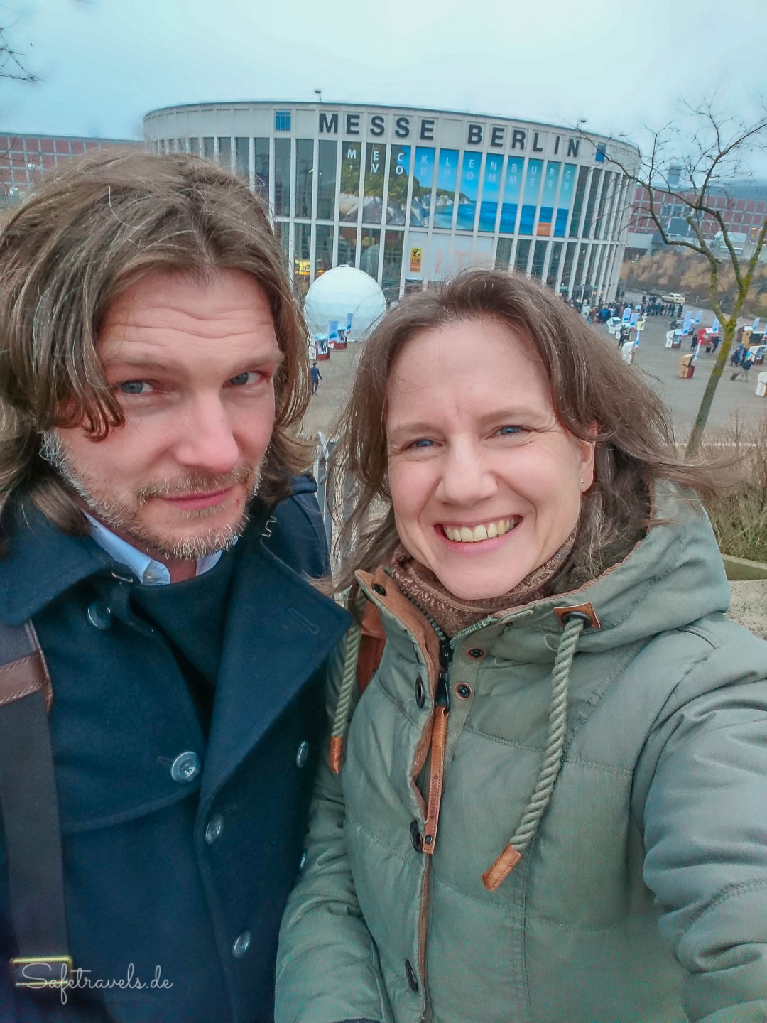 Wie war es jetzt mit dem richtigen ITB Outfit? Business Outfit oder doch lieber Bloglogo-Hoodie? Highheels oder Sneakers? Unsere Outfits könnt Ihr auf den Fotos sehen. Für mich ist es letztendlich eine Kombination aus schwarzer Jeans, olivfarbener Bluse, schwarzer Strickjacke, dunklen Ledersneakers und meinem warmen indischen Schal geworden. Markus ist in Jeans, weißem Hemd, lässigem Sakko und gut eingelaufenen Lederschuhen losgegangen. Wir haben uns beide sehr wohl gefühlt und fanden die Outfits ideal für einen langen Tag auf der Messe.