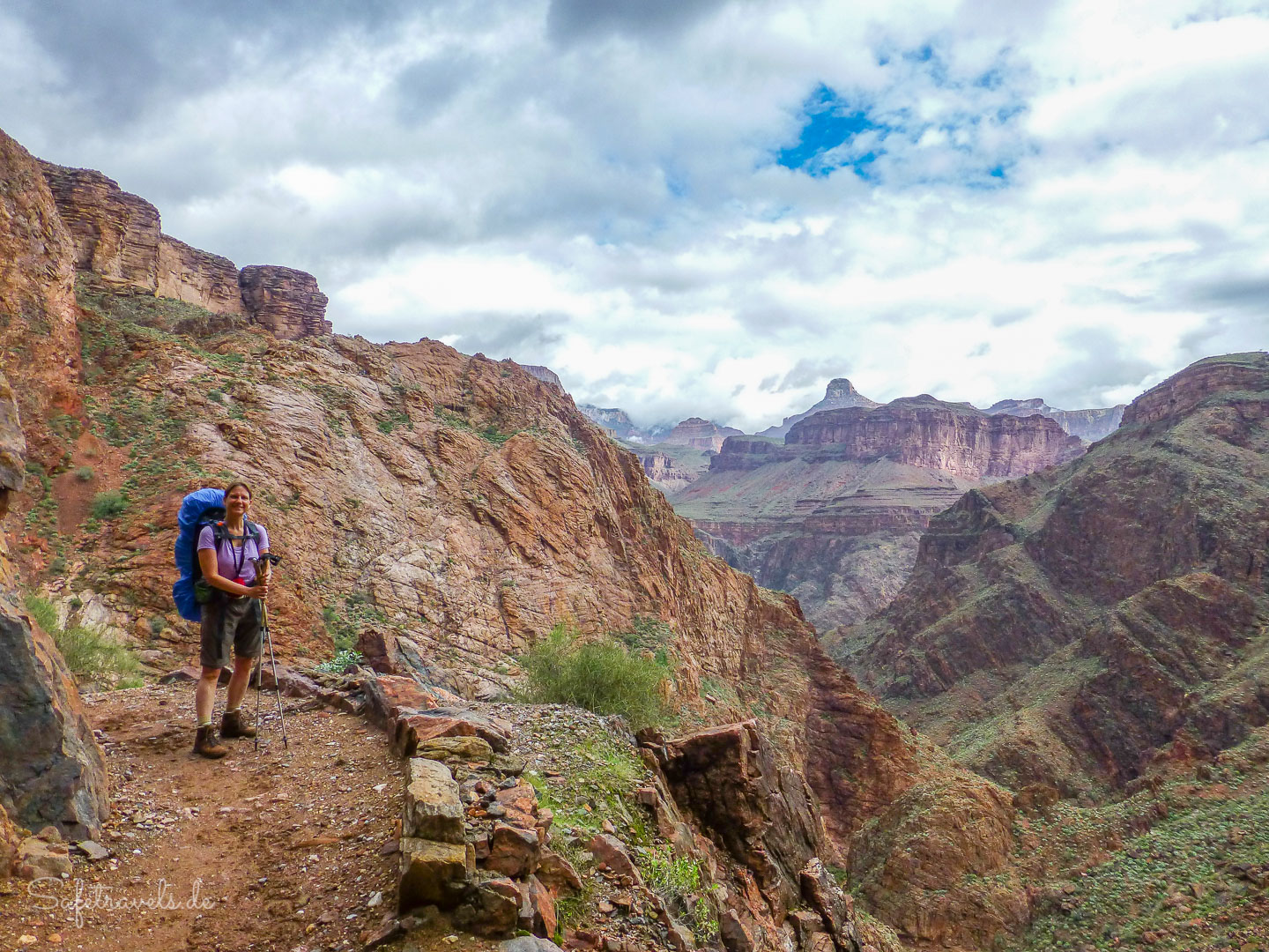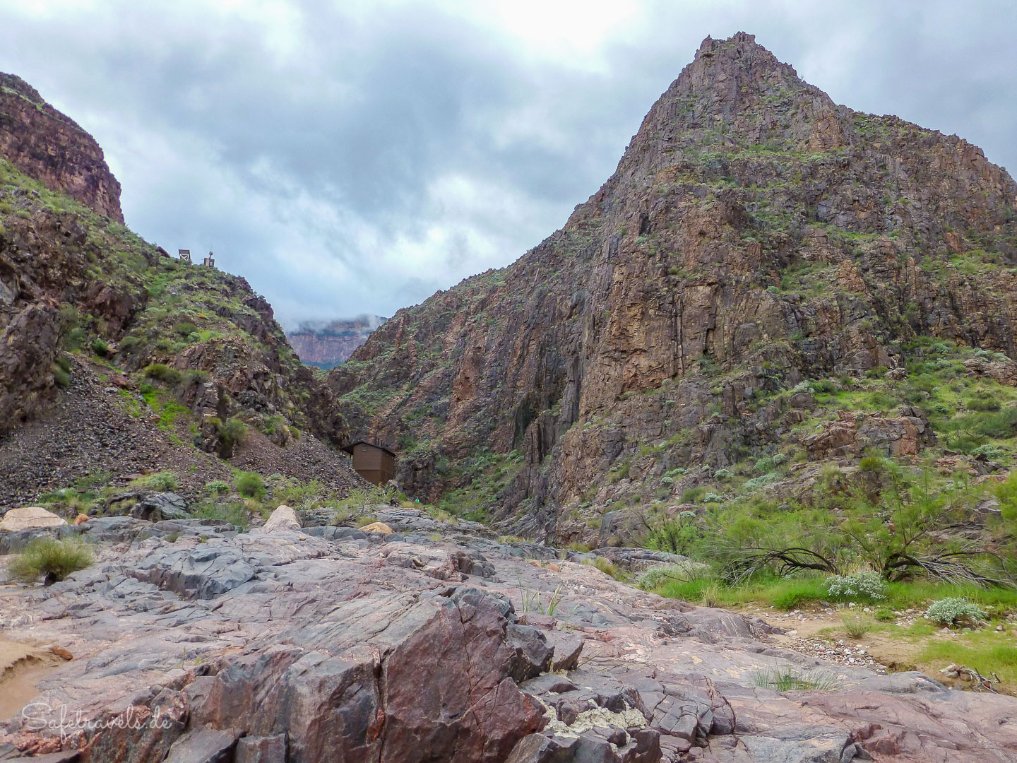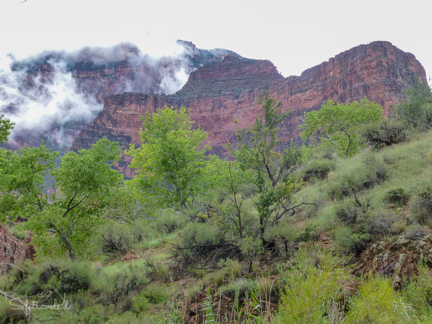 Die Wettervorhersage kündigt uns auch heute kein besseres Wetter an, deshalb können wir diesen späten Start wagen und haben nicht so viel Druck, um 10 Uhr vor der größten Hitze an der Phantom Ranch zu sein.