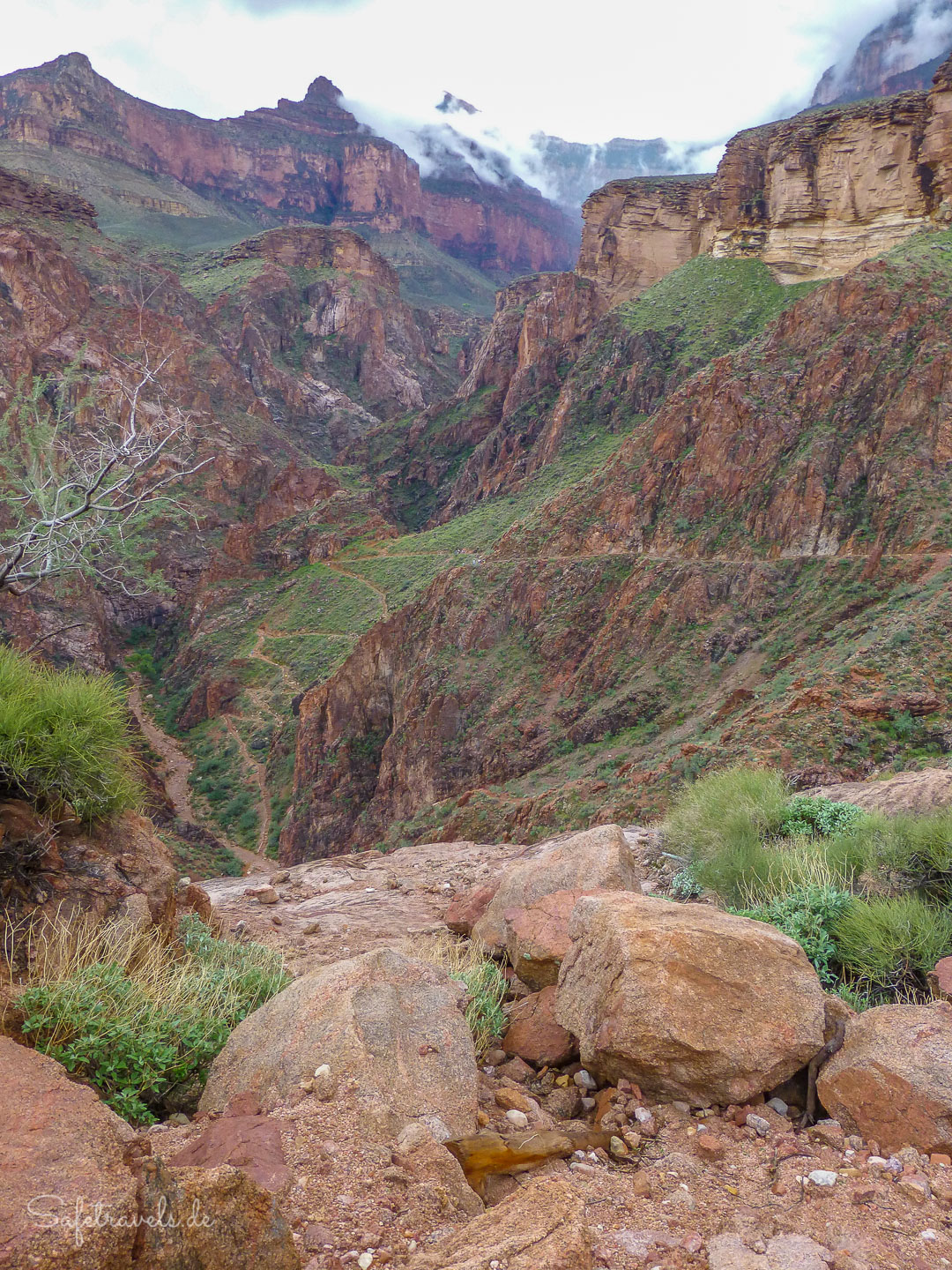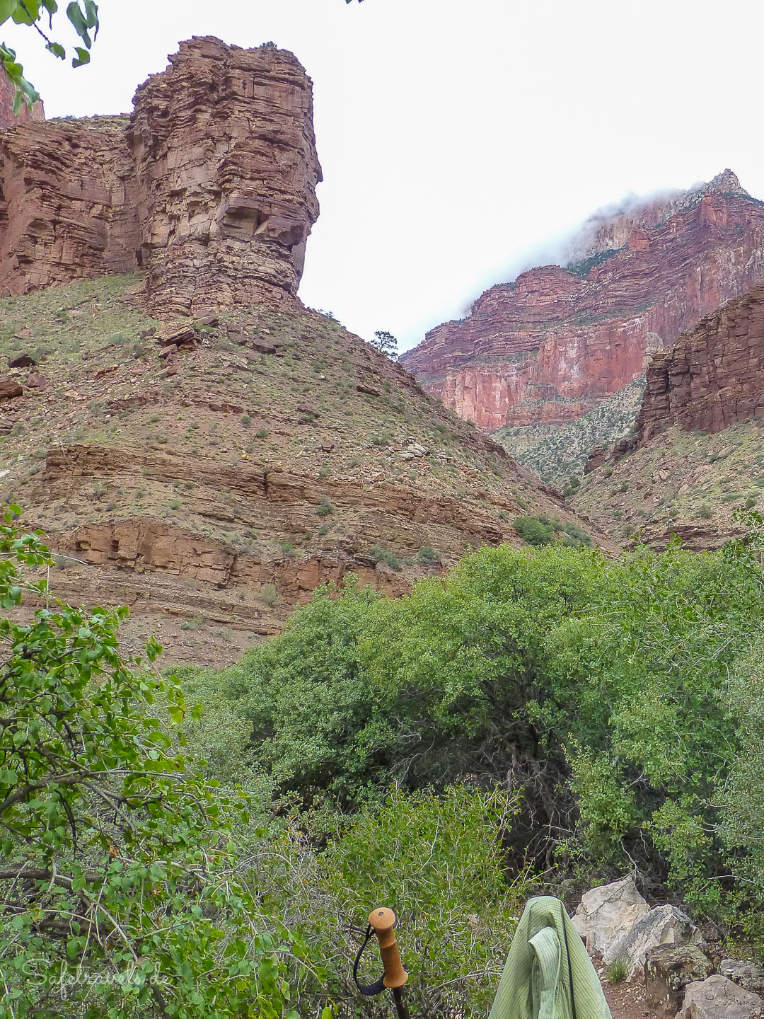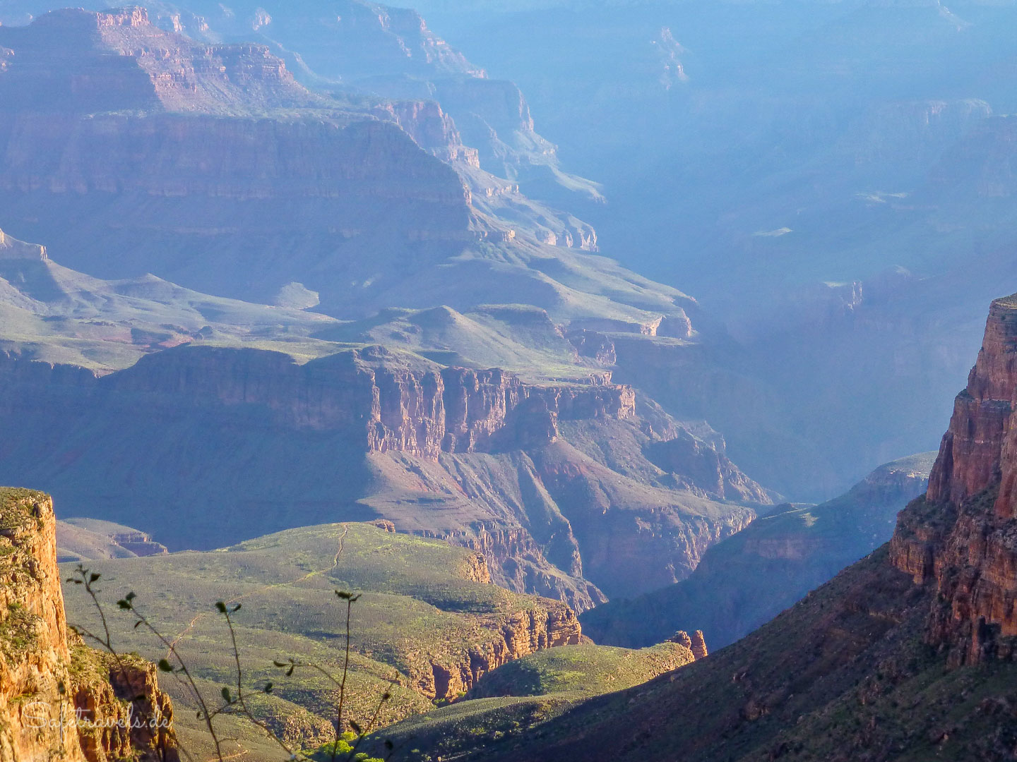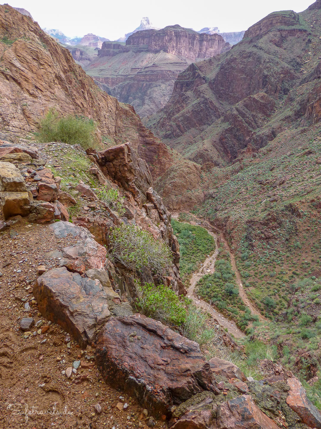 Die Wettervorhersage kündigt uns auch heute kein besseres Wetter an, deshalb können wir diesen späten Start wagen und haben nicht so viel Druck, um 10 Uhr vor der größten Hitze an der Phantom Ranch zu sein.