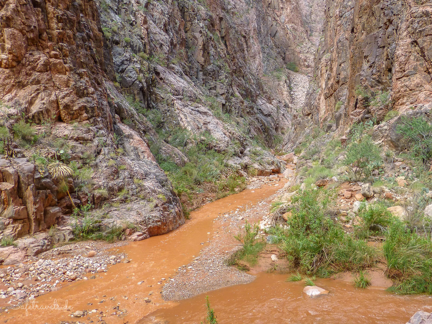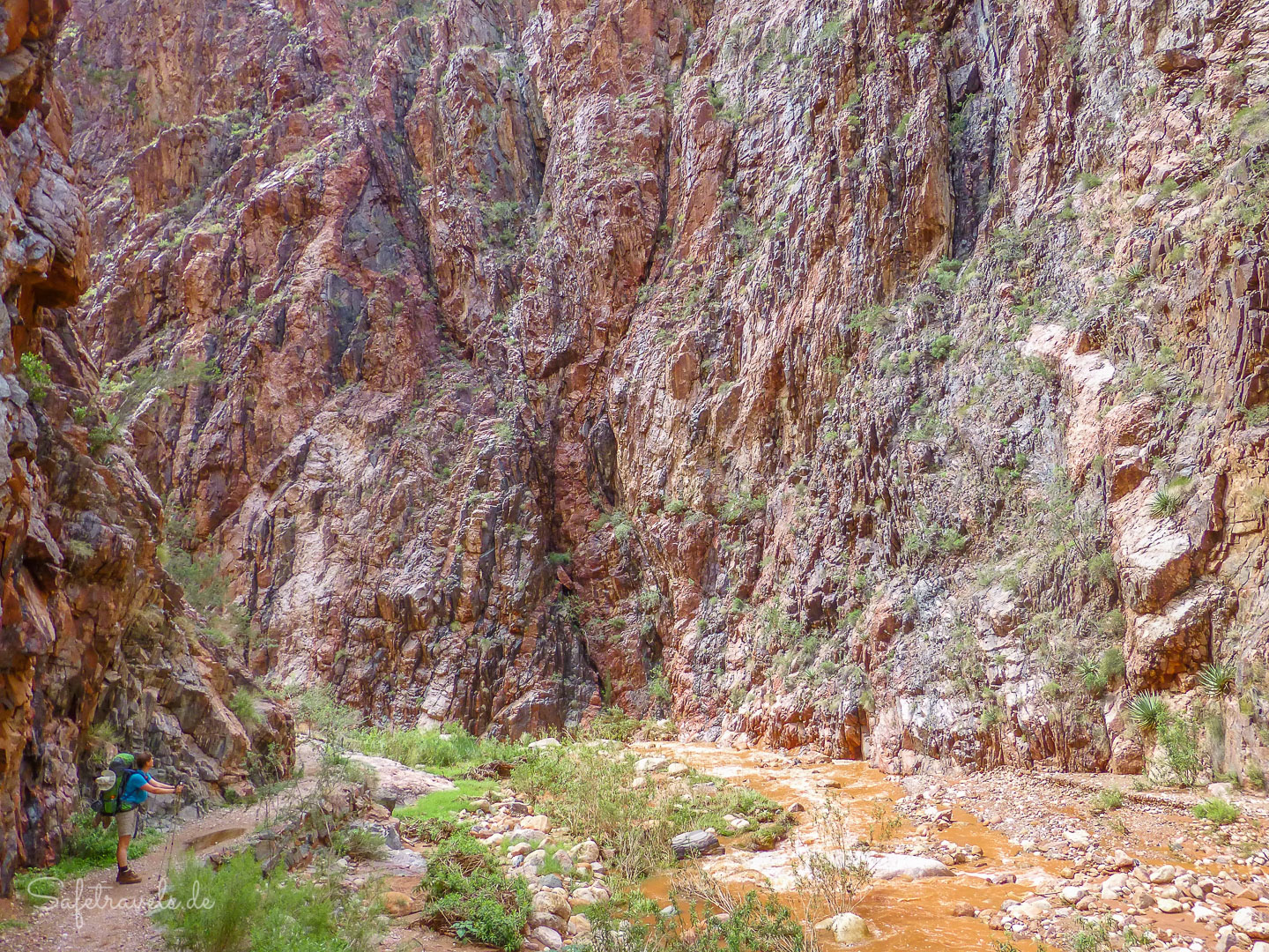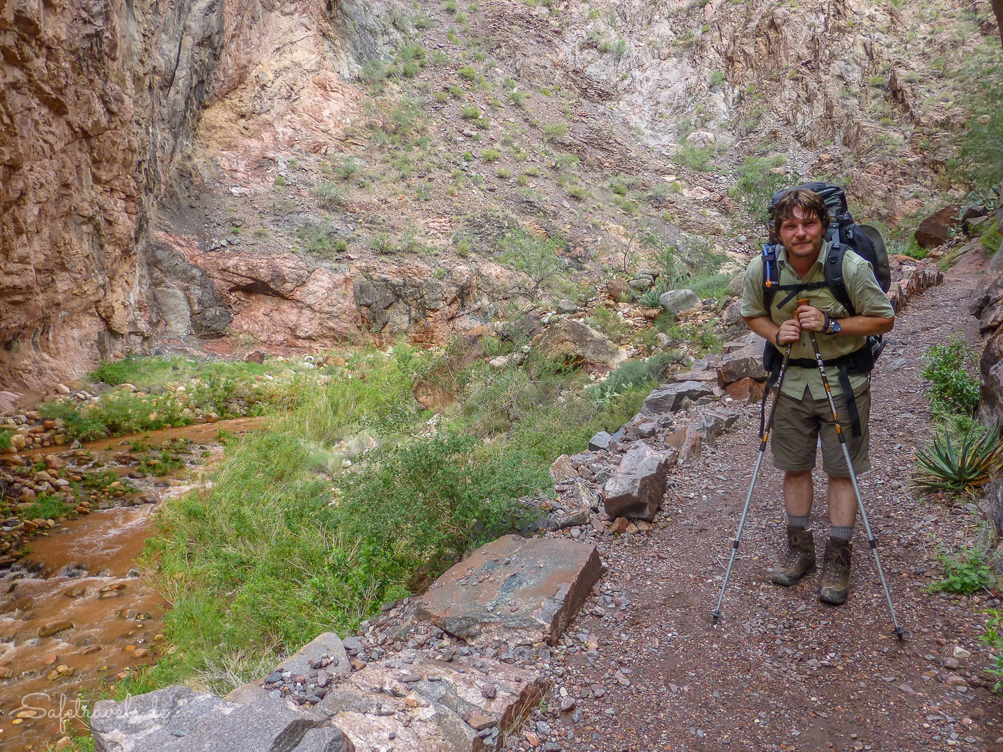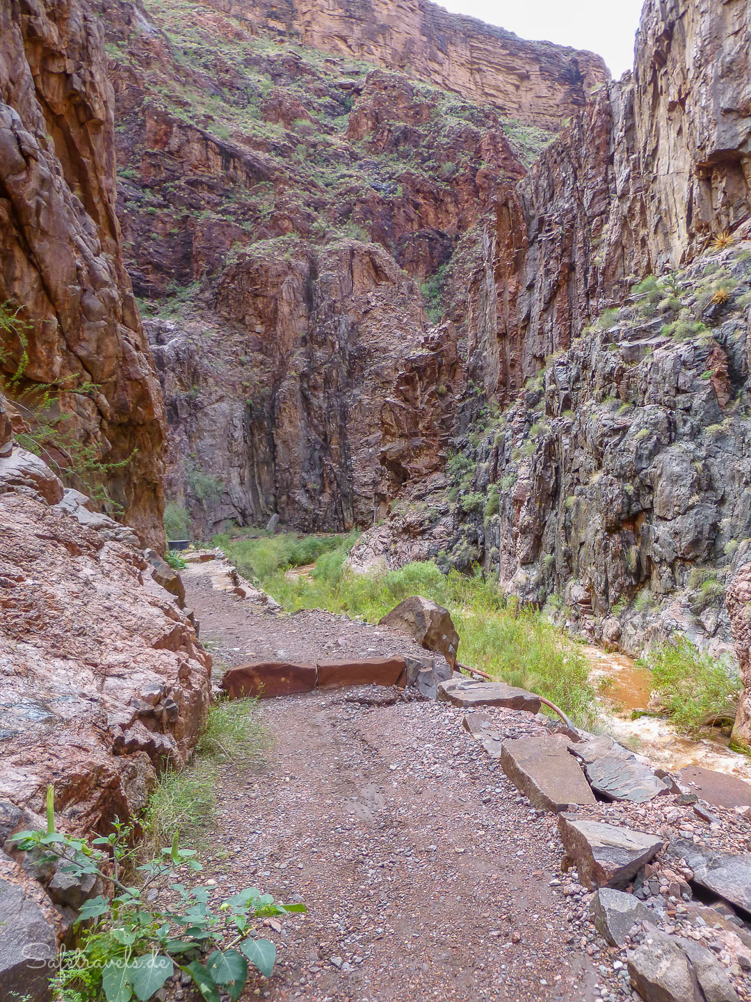 Die Strecke ist nicht so steil wie gestern und zieht sich gemächlich am Bright Angel Creek entlang. Immer enger rücken die Wände des Bright Angel Canyons zusammen.