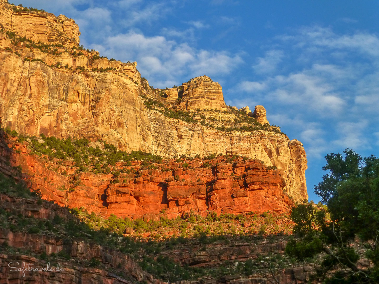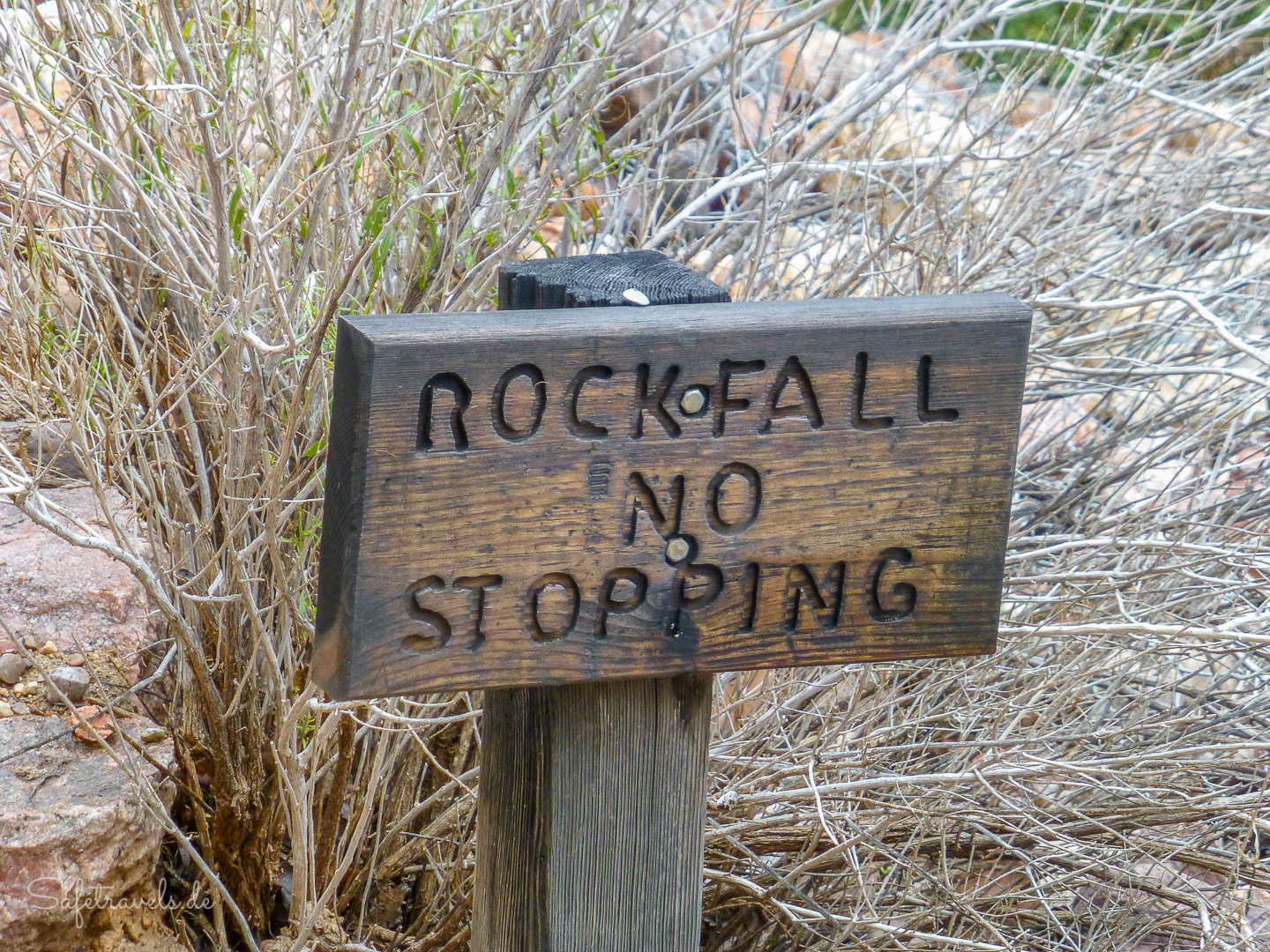 Auf der Strecke treffen wir auch insgesamt drei Ranger und jeder einzelne erkundigt sich nach unserem Wohlbefinden. „Looks like early morning folks out of the Garden“ sagt eine Rangerin und begrüßt uns freundlich. Wir versichern fröhlich, dass es uns absolut gut geht. „Good to keep it slow“ hören wir mehrmals, nachdem wir erklärt haben, dass wir uns ganze vier Tage Zeit genommen haben für Rim to Rim.