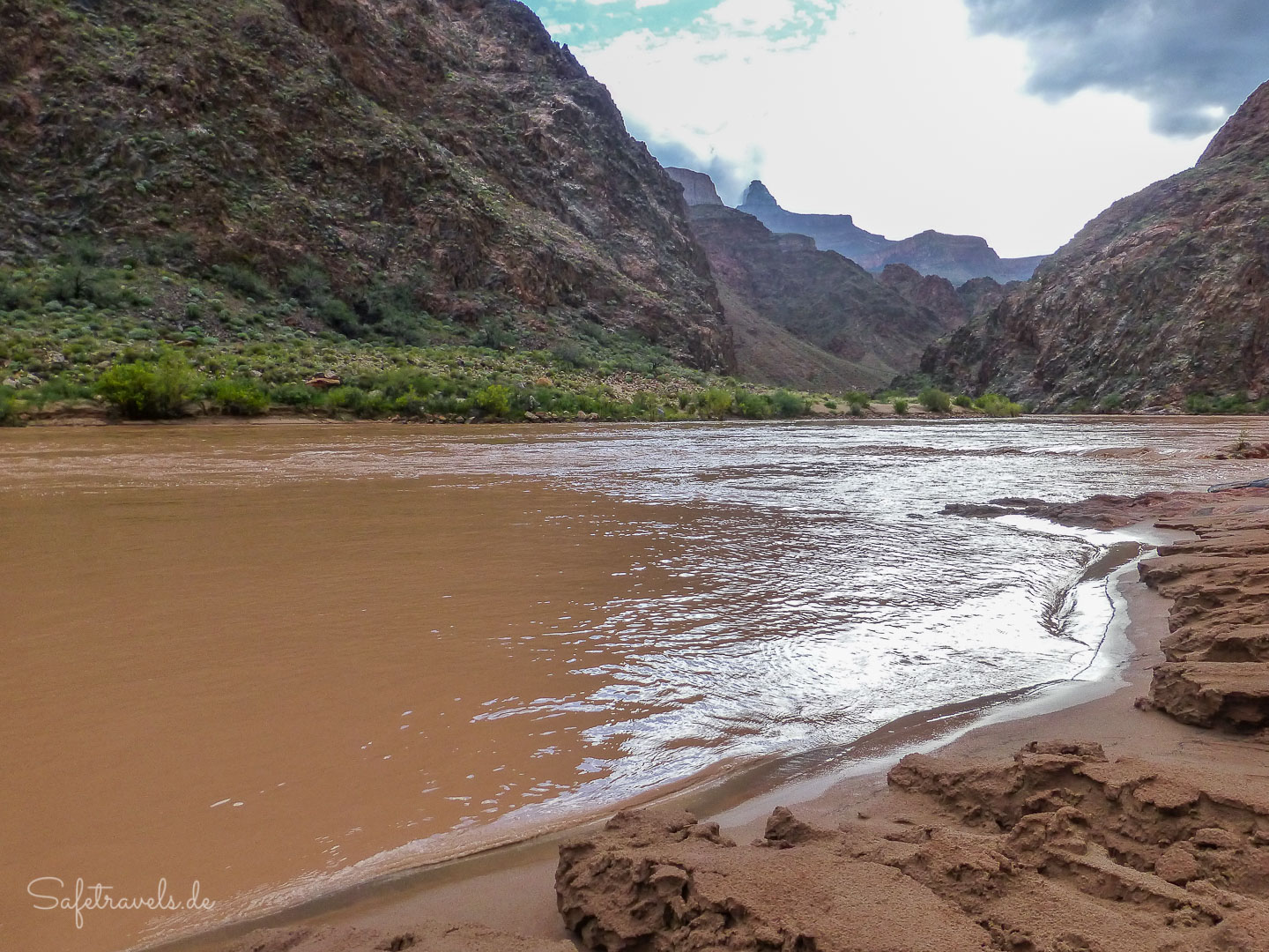 In der Nähe des River Resthouse machen wir einen Abstecher ans Ufer des Colorado, hier befindet sich der Pipe Creek Beach. Die Bezeichnung „Beach“ ist etwas irreführend. Baden kann hier echt lebensgefährlich sein, da der Fluß kalt ist und tückische Strömungen hat.