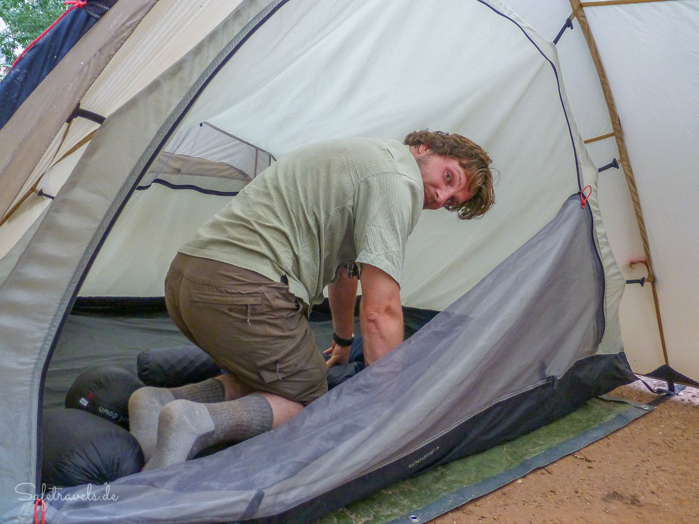 Bei dem Gewitter waren wir froh, ein wasserdichtes Zelt zu haben. Einigen ist das Zelt regelrecht weggeschwommen.