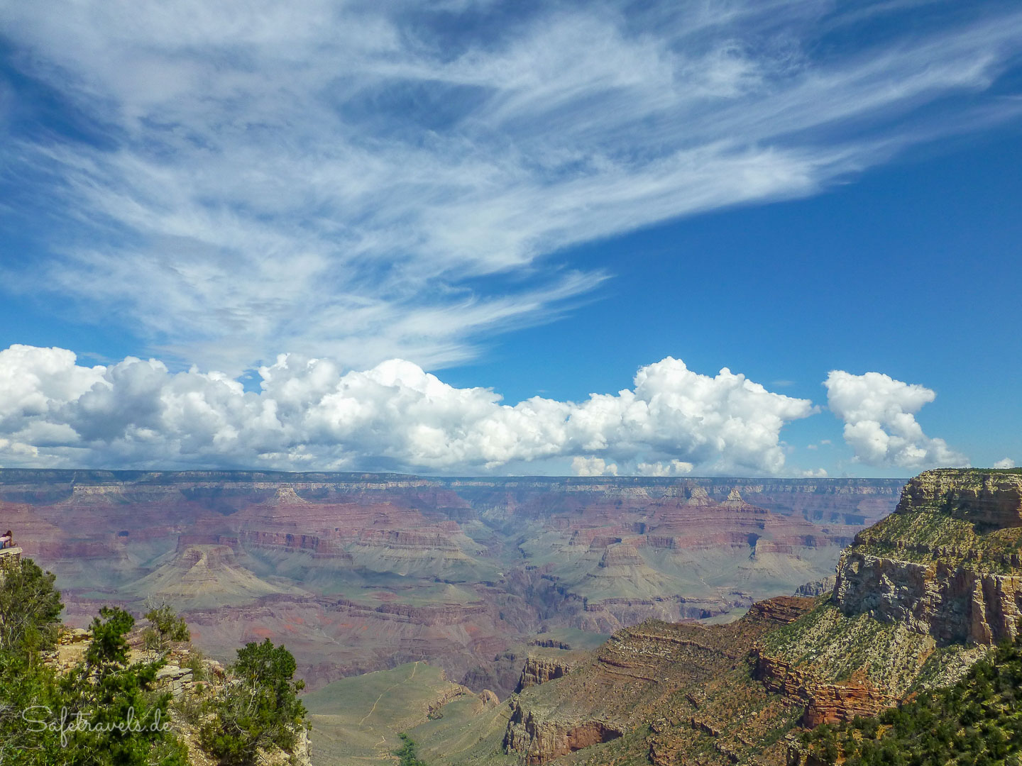 Viele Leute sind hier am Trailhead unterwegs und wir werden wieder ausgefragt und beglückwünscht. Wir finden schnell jemanden, der gerne unser Rim to Rim Finisher Foto macht. Dann fallen wir erstmal auf eine Bank, nehmen den Rucksack ab und lassen das Treiben am South Rim auf uns wirken.
