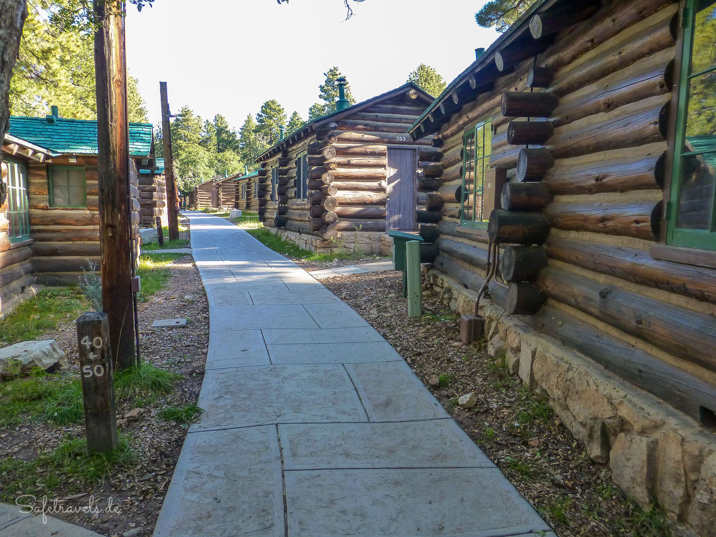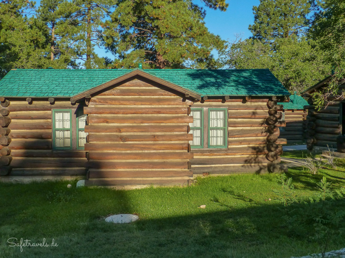 Wir haben für diese Nacht eine Frontier Cabin in der Grand Canyon Lodge reserviert, die wir auch sofort beziehen können. Unsere Cabin hat die Nummer 205 und befindet sich nah am Hauptgebäude der Lodge und auch nah am Parkplatz.