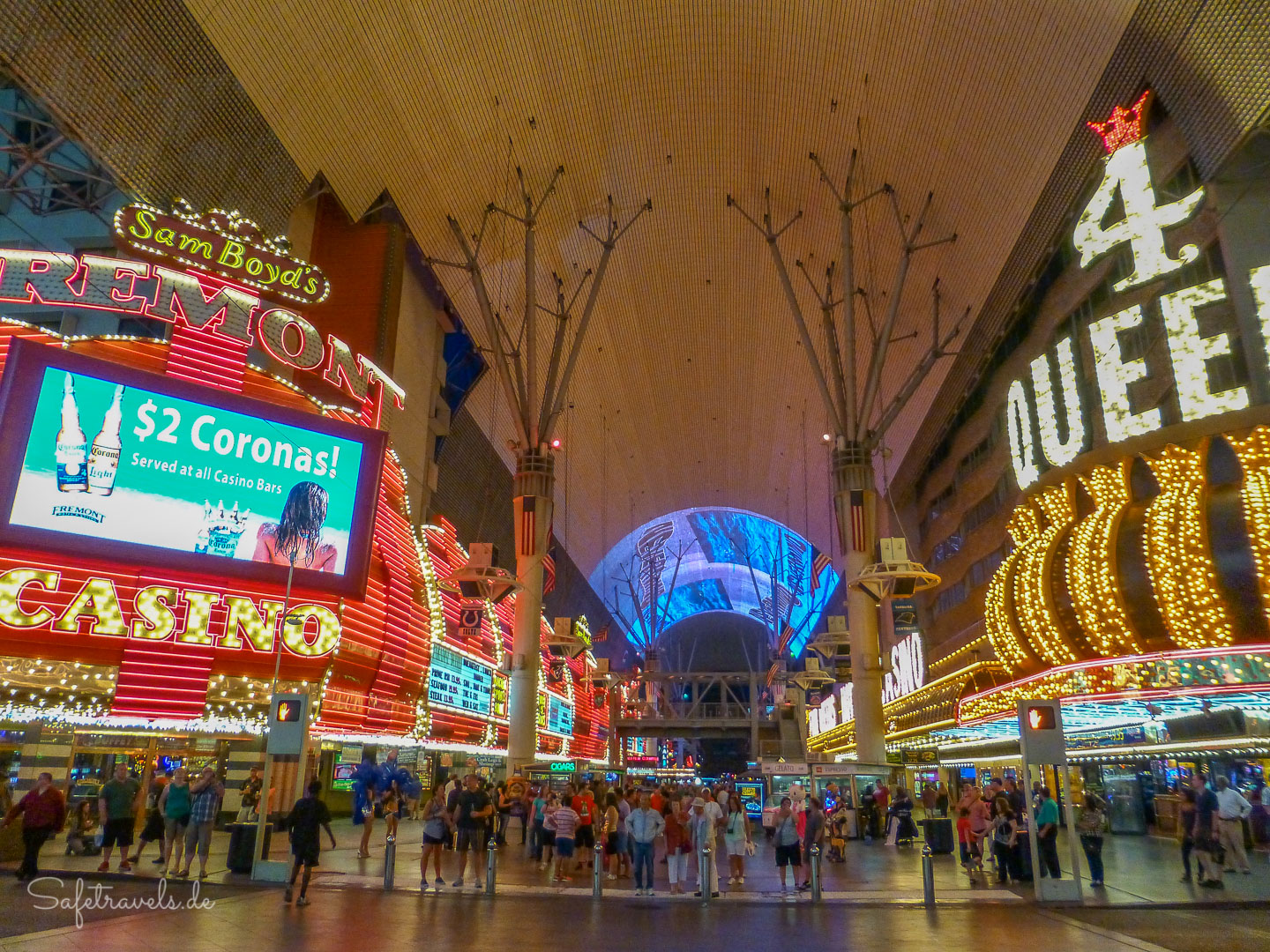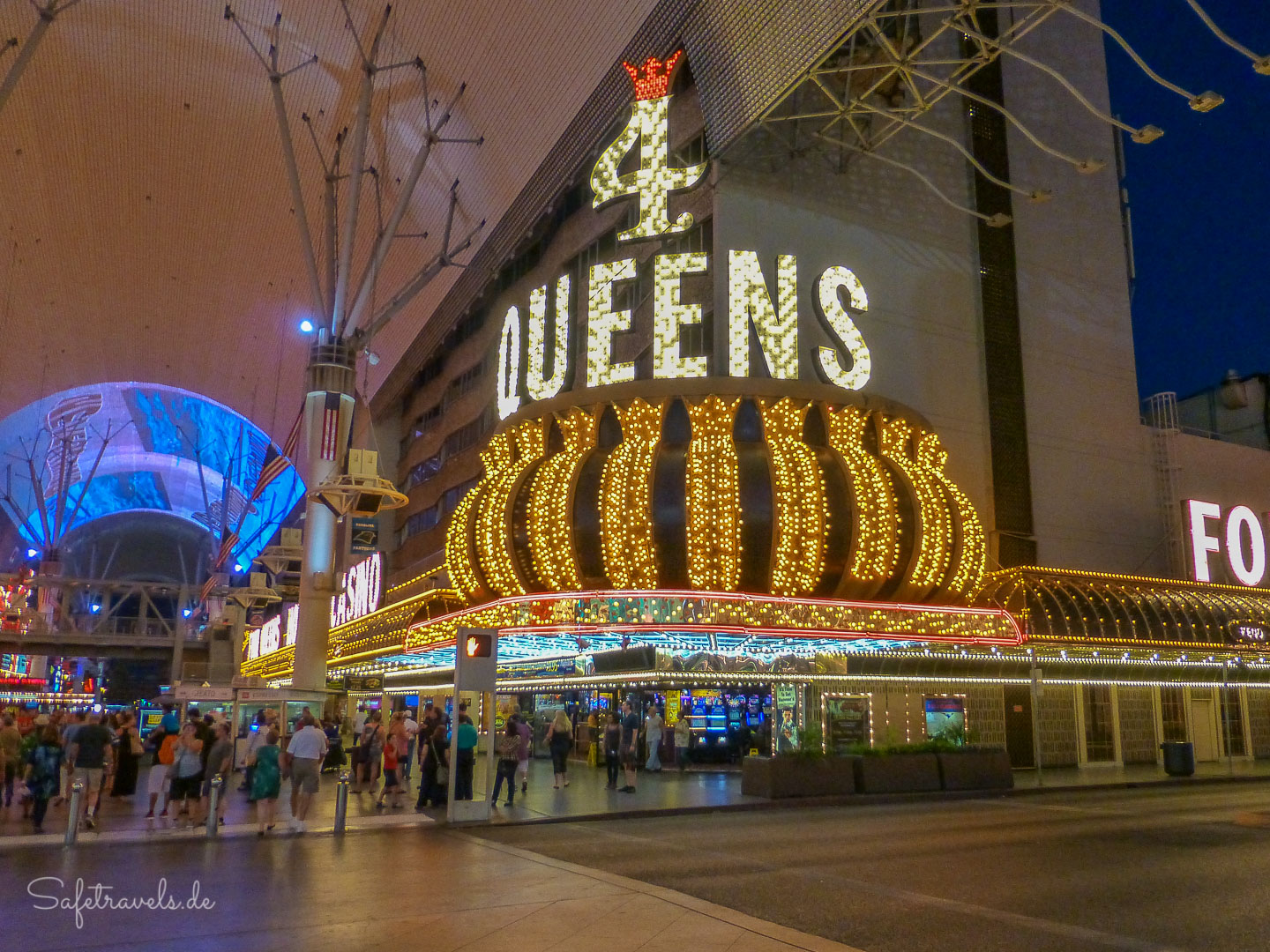 Nachdem sich Paul und Tim verabschiedet haben, lassen wir ein bisschen den Motor des Mustang brüllen und fahren nach Downtown. Die Armaturen des Mustangs sind blau beleuchtet und auch die Außenbeleuchtung sieht klasse aus. Geparkt wird das Pony im Golden Nugget.