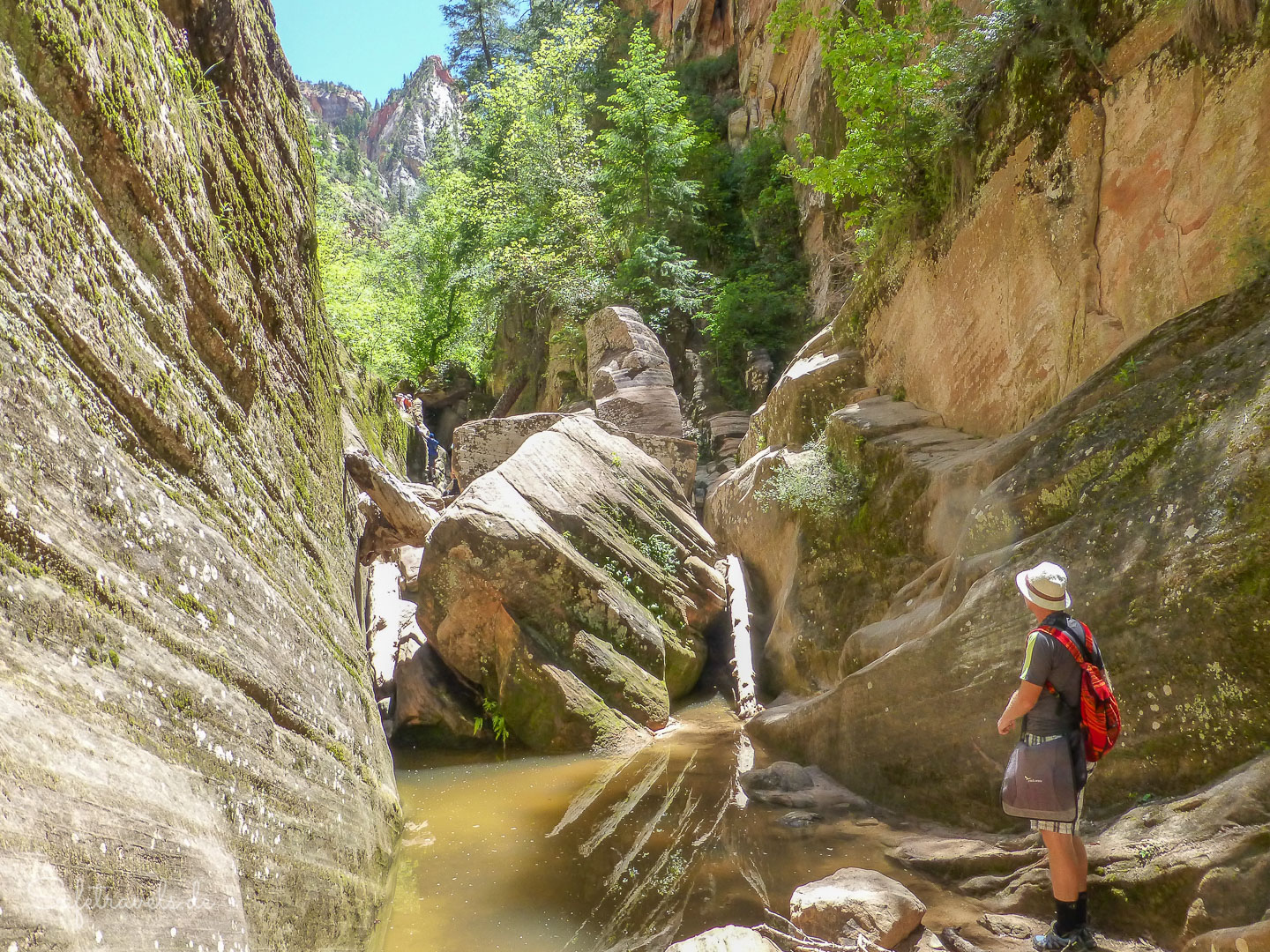 Hier ist für mich der Weg zu Ende und ich warte auf meinen Mann, der zusammen mit einem Schweizer den Hidden Canyon erforscht. Ich sitze entspannt auf einem Felsen und beobachte die Leute.