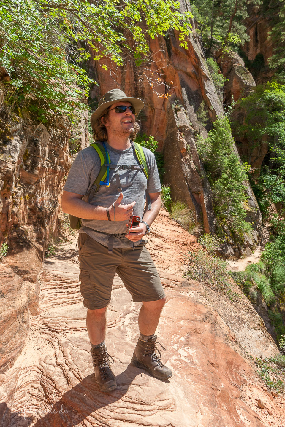 • Schuhe: Wanderstiefel sind nicht unbedingt notwendig. Leichte Turn- oder Trekkingschuhe* mit vernünftigem Grip auf dem Sandstein sind auch okay.