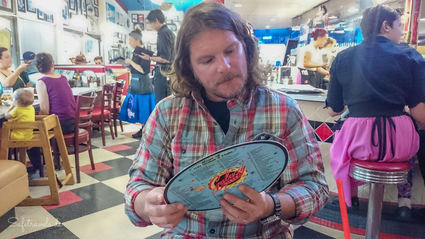 Schwarz-weiß karierter Fußboden, Mädels in Tellerröcken und eine Karte mit über 100 Milkshakes: das ist das Galaxy Diner in Flagstaff.