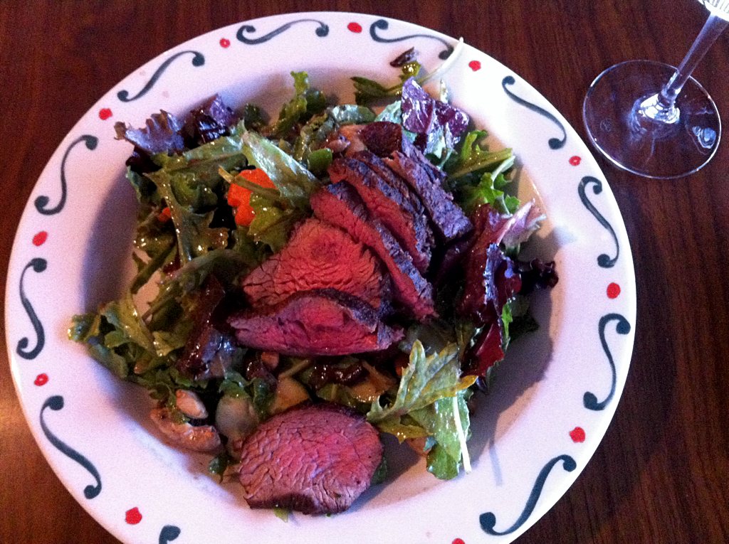 Das Restaurant gehört zum Lakeside Lodge Resort, wo wir auf dem Weg zum Yellowstone NP in einer wunderschönen komfortablen Cabin gewohnt haben. Vom Restaurant aus hat man einen tollen Blick auf den Fremont Lake, man hört von der Terrasse und im Innenraum die Takelage der Schiffe klappern und das Essen hat mediterrane und asiatische Einflüsse und zum Teil Bioqualität. Klaus hatte Chicken Piccata mit Kartoffelpüree und Zucchini und ich einen Asia-Salat mit perfekt gebratenem Rindfleisch, dazu gab es Bio-Riesling. 99 Forest service Road, Pinedale, WY 82941, USA