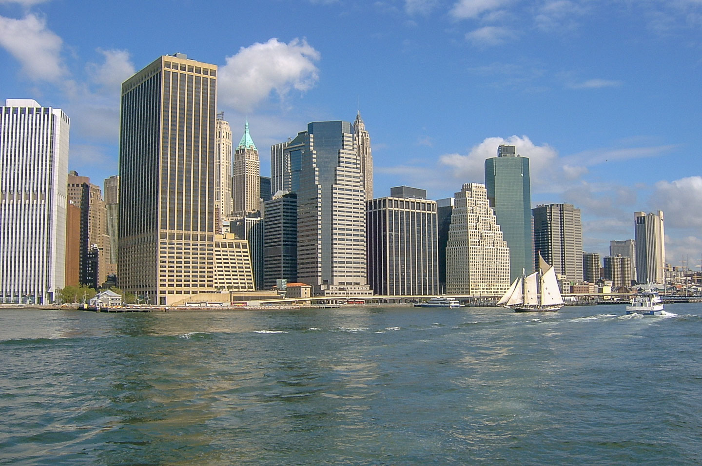 16. September 2006: Endlich wachen wir bei Sonne auf. Blauer Himmel! Zeit für das nächste Ticket aus unserem New York Pass: eine Bootsfahrt mit der Circle Line. Wir entscheiden uns für die dreistündige Tour einmal ganz rund um Manhatten, auf der wir die Insel von allen Seiten bewundern können. Als wir am World Trade Center vorbei fahren, bekommen wir eine Gänsehaut. Der Guide erklärt uns, daß die Twin Towers, die bis vor fünf Jahren hier noch standen, doppelt so hoch wie die anderen Gebäude hier an der Südspitze waren.