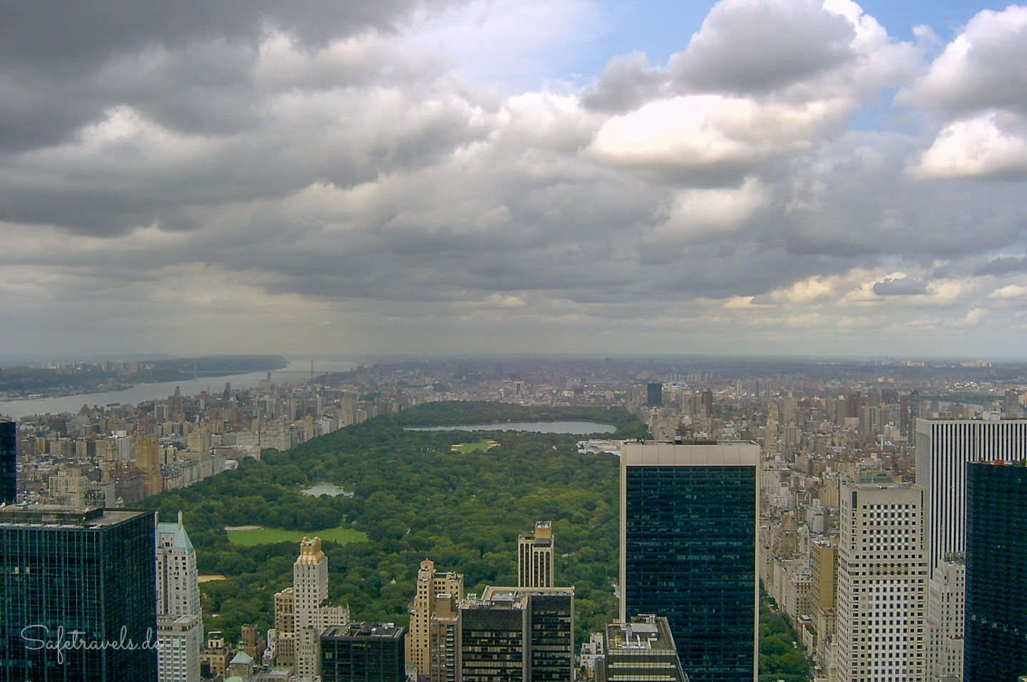 Oben auf dem Dach ist es voll, drängelig und die menschen sind sehr rücksichtslos gegenüber meiner Mutter (die mit einem Gehstock unterwegs ist). Kein Vergleich zum entspannten Besuch auf Top of the Rock vor drei Tagen. Da ein Stativ hier oben nicht erlaubt ist, versuche ich freihändig bzw. mit Auflegen auf der Mauer ein paar Schnappschüsse. Richtig gut gefällt uns der Besuch hier oben allerdings nicht.