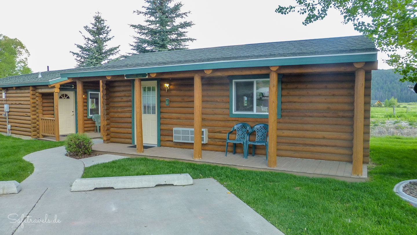 Gegen 19 Uhr erreichen wir Thayne und sind begeistert von unserer hübschen Unterkunft, dem Cabin Creek Inn. Das Hotel ist familiengeführt und alle Cabins sind liebevoll thematisch eingerichtet. Unsere Cabin liegt direkt am Creek und heißt Fishing Hole. Wir genießen die rustikale Gemütlichkeit und essen im Zimmer.