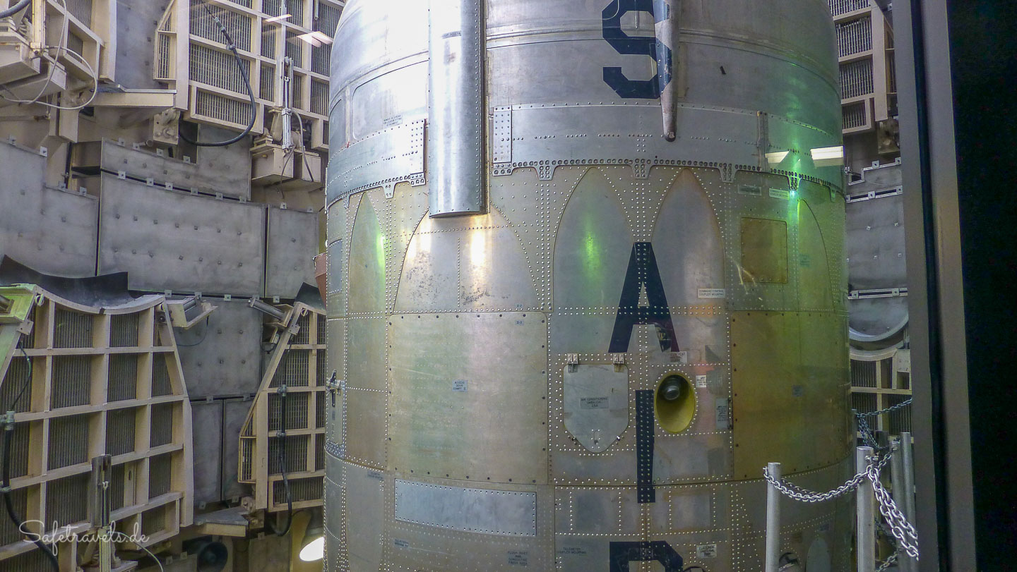Nach dem Kontrollraum wurden die Quartiere besichtigt, die den Soldaten seinerzeit zur Verfügung gestellt wurden. Insgesamt alles sehr trostlos ca. 20m unter der Erde, aber eben funktional. Zum Abschluss im Hinblick auf das, was sich unter der Erde befand, führte die Tour in den Abschuss-Silo, in dem sich die „entschärfte“ Titan II-Rakete befindet.